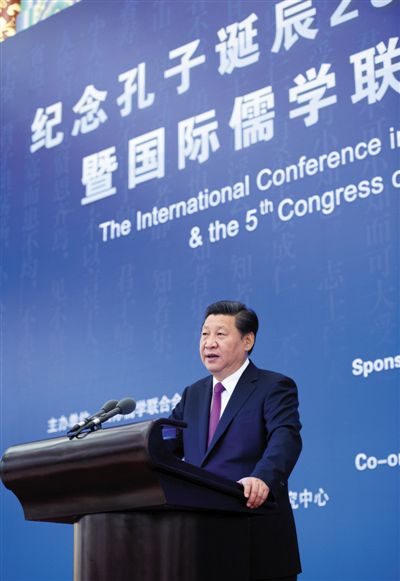 中国国家主席习近平出席国际儒学联合会人民大会堂举行的纪念孔子诞辰2565周年国际学术研讨会并发表重要讲话