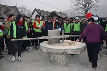 吴村镇龙尾庄游客可体验打井水、磨碾子、写春联、剪纸窗花、包水饺等年味浓郁的乡村体验活动,感受圣地乡村过大年的浓郁氛围。